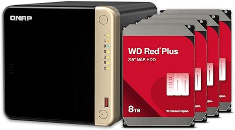 The QNAP TS-464-8G-48WD-US is bundled with a 24 TB storage array, configured using WD Red Plus hard drives. WD Red Plus drives are optimized for NAS environments, designed for continuous operation and consistent performance when used in multi-disk setups.